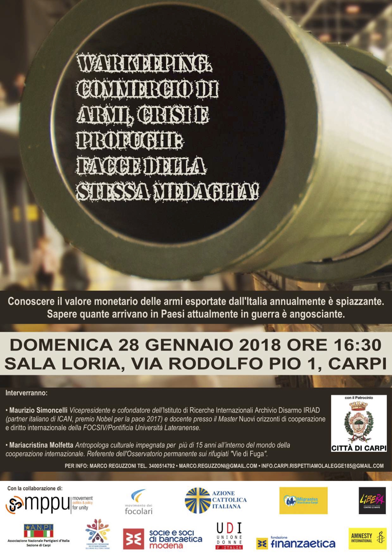 Conferenza – Esportazione di Armi e MigrazioniBy Giovani Posted 28 Gennaio 2018 In Eventi, Eventi Adulti, Eventi GConferenza – Esportazione di Armi e Migrazioni2018-01-282018-01-19https://www.accarpi.it/wp-content/uploads/2017/10/accarpi-logo.pngAzione Cattolica Diocesi di Carpihttps://www.accarpi.it/wp-content/uploads/2017/10/accarpi-logo.png200px200px 0 Data / Ora dom 28 Gen 2018 Luogo Sala Loria CategorieEventiEventi AdultiEventi G