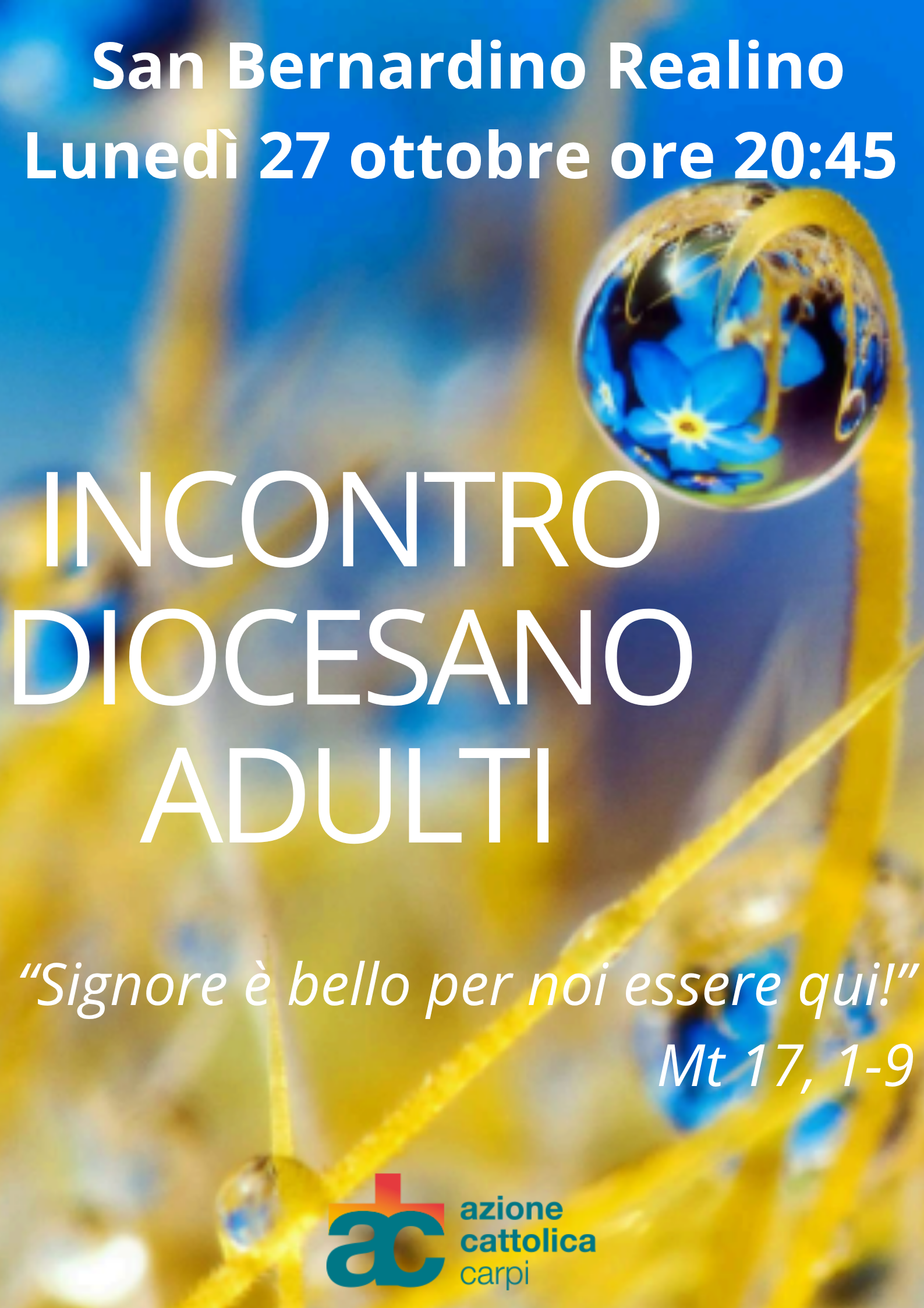 Lunedì 27 ottobre ore 20:45 presso la parrocchia di San Bernardino Realino ci ritroveremo per l’ incontro diocesano adulti.