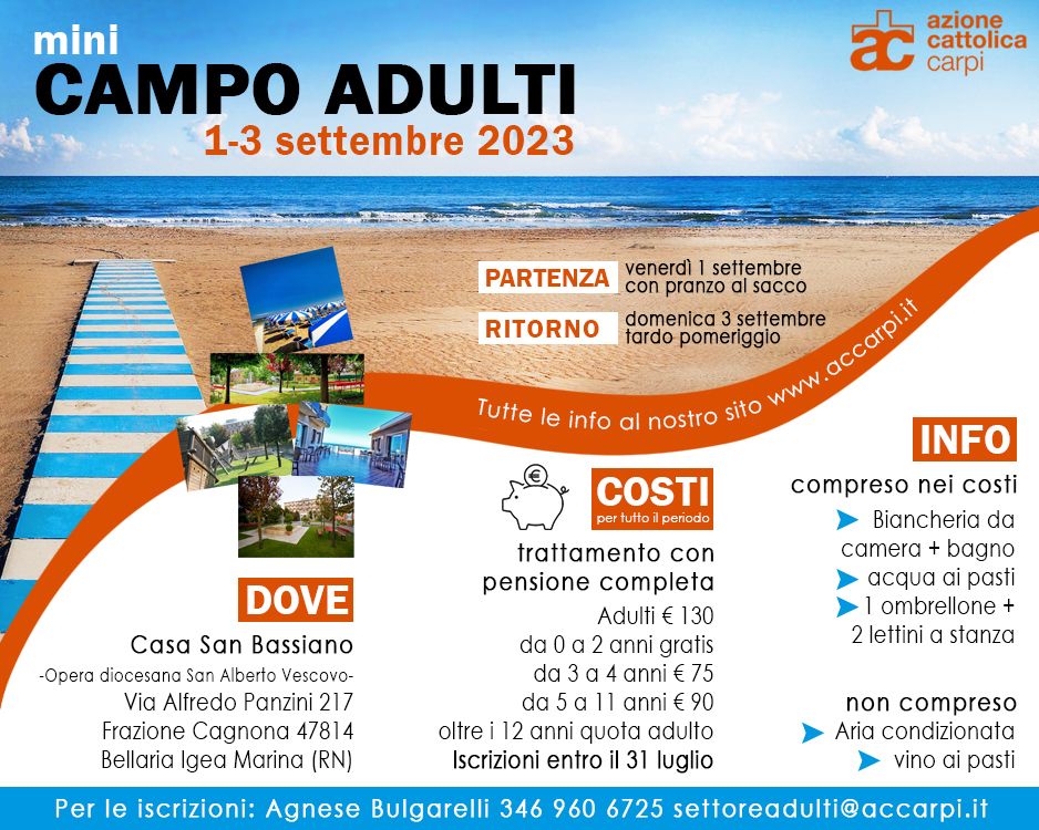 Il mini campo estivo aperto a tutto il settore adulti si terrà nel weekend 1-3 settembre 2023 a Bellaria Igea Marina.