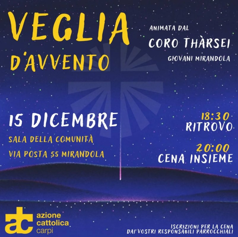 Veglia d’avvento – settore GiovaniBy Redazione Posted 15 Dicembre 2024 In Eventi, Eventi G, Eventi GGVeglia d’avvento – settore Giovani2024-12-152024-12-12https://www.accarpi.it/wp-content/uploads/2017/10/accarpi-logo.pngAzione Cattolica Diocesi di Carpihttps://www.accarpi.it/wp-content/uploads/2017/10/accarpi-logo.png200px200px 0 Data / Ora dom 15 Dic 2024 Luogo Oratorio di Mirandola CategorieEventiEventi GEventi GG